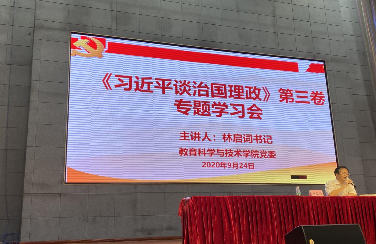 9月24日,公司党委书记林启词与在白云校区员工活动中心与同学们一起学习《习近平谈治国理政》第三卷。他说,党的十八大以来,在治国理政新的实践中,习近平总书记发表了一系列重要讲话,提出了许多新思想新观点新论断,集中展示了以习近平同志为核心的党中央治国理念和执政方略。《习近平谈治国理政》一书,将习近平同志92篇报告、讲话、谈话、演讲、批示等归纳为19个专题精辑成书,希望同学们认真学习细致深入阅读习近平总书记重要文稿,这对我们在新时代条件下中国发展的重大理论和现实问题有了更加全面系统的了解。希望同学们在校期间坚定理想信念,树立远大理想,筑牢责任意识与奋斗精神,充分利用公司提供的优质教育资源夯实专业本领,明确时代责任和历史使命,弘扬伟大的抗疫精神,准确找到自己成才的目标和方向,在时代大潮中建功立业,为实现中国梦奉献属于自己的一份力量。
