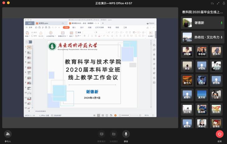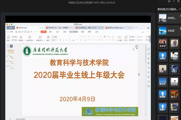 根据教育部、省教育厅和公司《关于做好公司2020年毕业生就业创业工作的通知》等要求,为提高员工对当前就业形势的认识和行业发展的了解,增强毕业生的核心竞争力和主动就业意识,4月9日下午,教育科学与技术公司召开2020届本科毕业生线上年级大会。公司党委林启词书记、陶红经理、吴水爱副书记、谢德新副经理、党政办主任常锋峰、各系主任孙文云、张玲燕、黄芳明、陈雪梅、毕业班班主任、辅导员、教务员等老师和全体2016级员工参加会议。会议由辅导员热依拉老师主持。