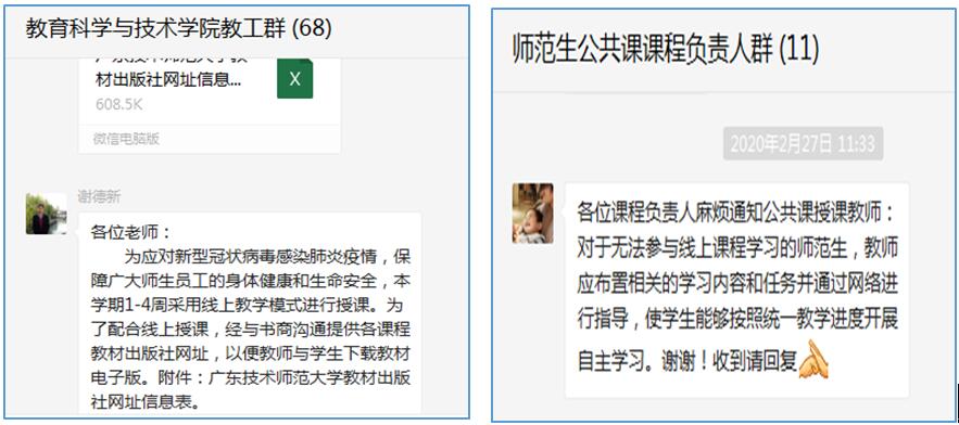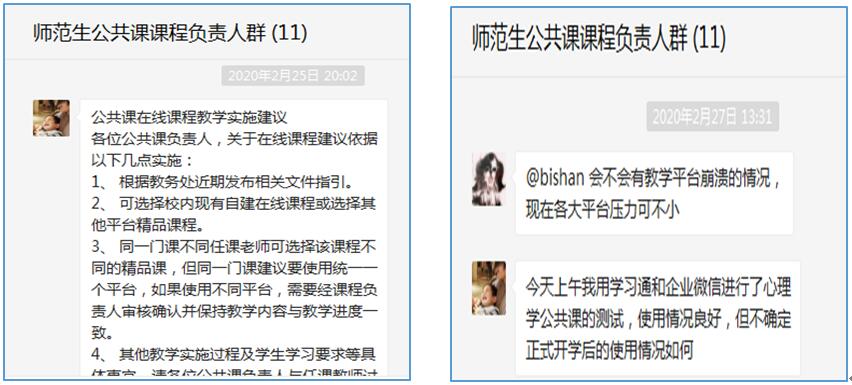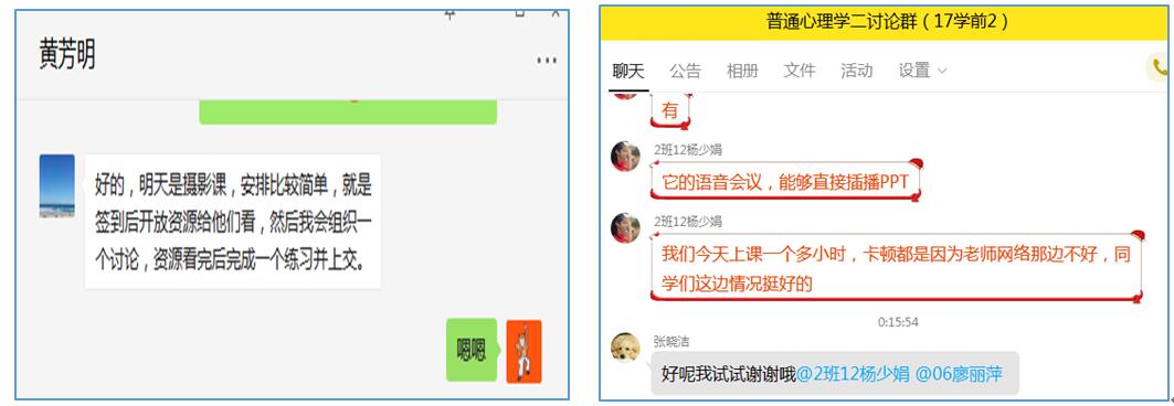 为了确保线上教学工作顺利开展,bevitor伟德国际1946各系进行了线上教学研讨。学前教育系在线召开本科线上教学平台及教学方法研讨会,老师们对前期线上教学平台试用情况进行总结,结合课程选择适切的平台和教学方法。应用心理学系集中在微信群讨论了线上线下资源的结合使用情况和相应比例配置,并分享了使用腾讯课堂、钉钉、企业微信、超星学习通等平台的感受。教育技术学系主要讨论选择什么教学平台、如何有效组织线上教学、怎样合理安排教学进度等问题,主要就超星平台的具体使用、qq群直播测试、腾讯课堂测试等进行了讨论与交流。数字媒体技术系讨论选定了优质的网络平台、组织员工提前进行线上测试,下载了电子版教材提前让员工预习。师范生公共课课程负责人分别开展在线教学过程与学习流程的讨论,进行平台使用的心得分享,各科进行了试课,并针对试课情况开展讨论和教学方案的调整。