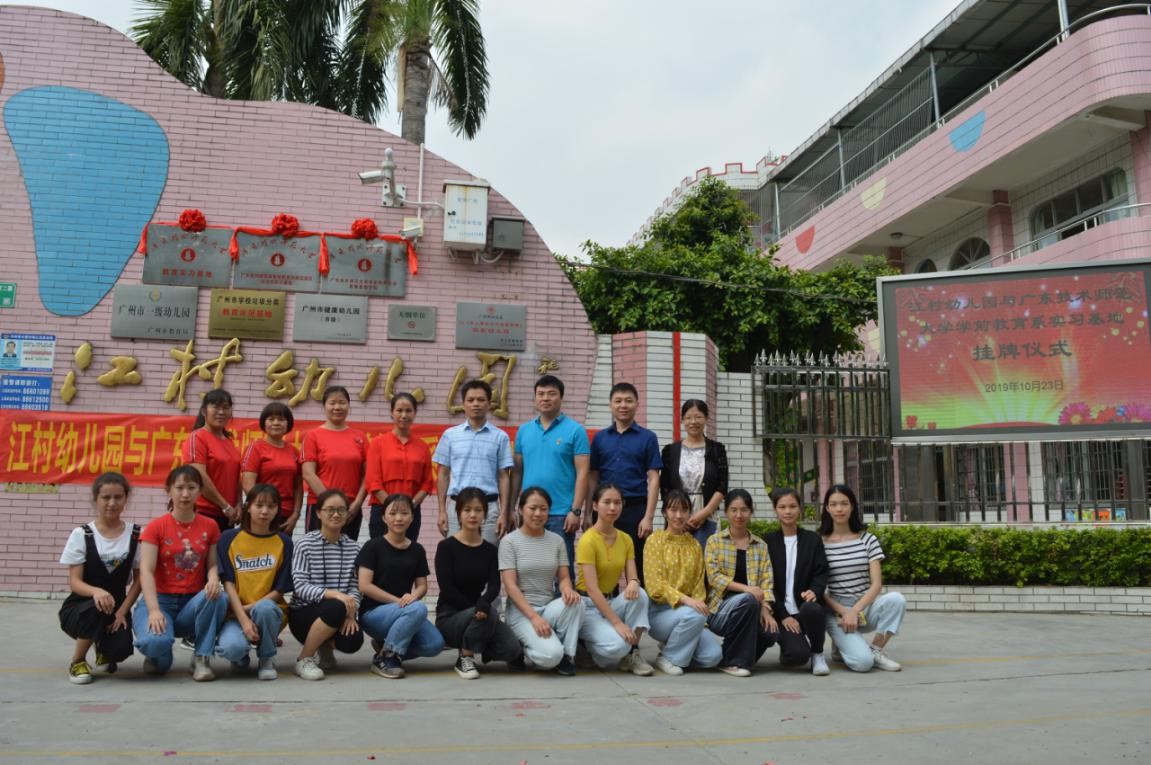 10月23日上午,江村幼儿园实习基地挂牌仪式暨2016级员工实习中期考核会议于江村幼儿园如期举行。教育科学与技术公司谢德新副经理、黄茂勇老师、张晓洁老师参加会议。江村幼儿园江志云园长、苏秀珍主任、钟筱蓬老师、谭素梅老师及江村村委会领导江振球先生出席会议并致辞。