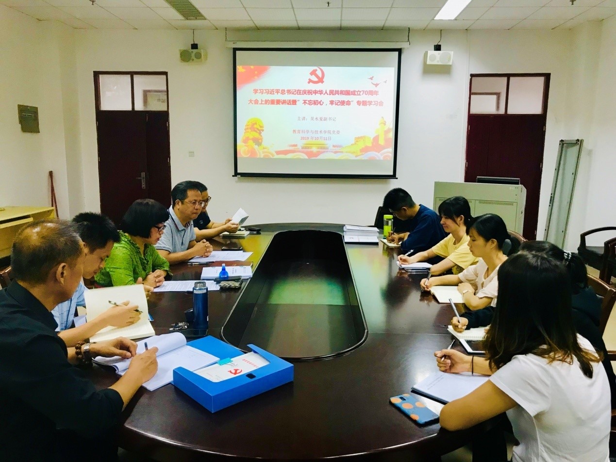 会上,公司党委副书记、“不忘初心、牢记使命”主题教育工作小组副组长吴水爱作了中心发言,以《自豪·致敬·奋斗——学习习近平总书记在庆祝中华人民共和国成立70周年大会上的重要讲话》为题谈了学习心得体会。她指出,习近平总书记在庆祝中华人民共和国成立70周年大会的重要讲话回顾了中国的昨天,总结了中国的今天,宣示了中国的明天。阅兵仪式和群众游行活动充分彰显了国家实力与民族自信,极大地激发了全国人民的民族自信心、民族自豪感和爱国奋斗精神。作为高校员工政工干部,深感责任重大,使命光荣。在今后的工作岗位更要坚守初心和使命,立足岗位,准确把握好老员工的思想政治规律,教书育人规律、员工成长规律,深入细致地做好青年员工的思想引领、价值引领、坚持以生为本,立德树人、将规范管理的严格要求和春风化雨、润物无声的灵活方式结合起来, 在实际工作中落实立德树人的根本任务,培养德智体美劳全面发展新时代的建设者和社会主义接班人。