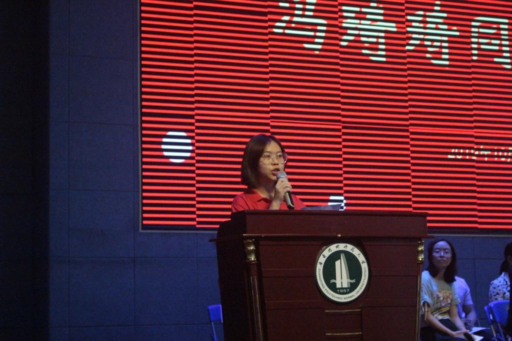 大会第四项,老生代表院员工会主席冯琦琦同学代表全体教育科学与技术公司员工发言。她结合个人成长经历给师弟师妹分享了许多珍贵有用的经验,同时也叮嘱同学们要珍惜时光,勤奋好学、积极进取,更好地展现广师大教科学子的风采。