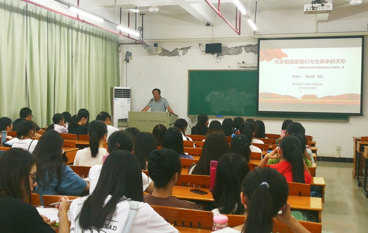 9月26日,在伟大的中华人民共和国成立70年之际,公司党委书记林启词给师生上思政第一课。在“热爱祖国是我们与生俱来的天职”的讲座中,他与同学们一起回顾中华人民共和国成立70年来取得巨大的成就。他说, 1921年中国共产党诞生后,深刻改变了近代以后中华民族发展的方向和进程,深刻改变了中国人民和中华民族的前途和命运,深刻改变了世界发展的趋势和格局。