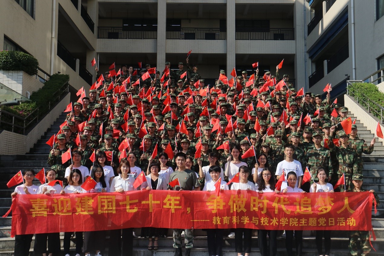 9月21日是第十九个全民国防教育日,教育科学与技术公司开展“赞颂辉煌成就、军民同心筑梦”为主题的全民国防教育日暨“军训话初心,同唱一首歌”主题党日教育活动,大家以实际行动关心和支持国防和军队建设,喜迎中华人民共和国成立70周年。公司党委吴水爱副书记出席仪式,全体员工党员和2019级新生共计450余人参加本次活动,活动由辅导员、军训副指导员吴晨阳老师主持。