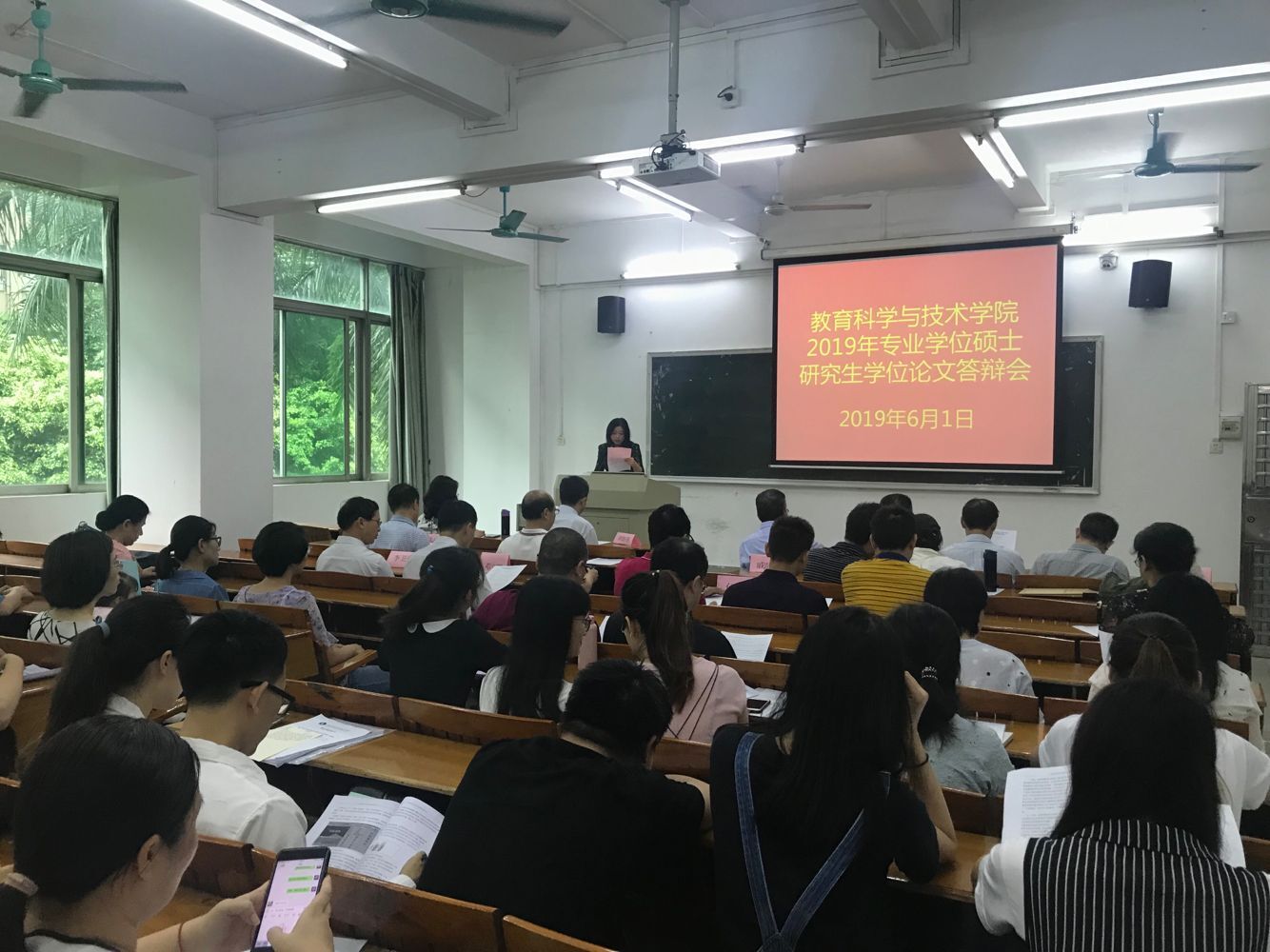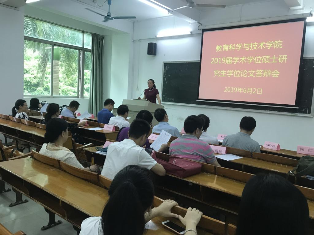 2019年6月1-2日,教育科学与技术公司2019届硕士研究生学位论文答辩会在第一教学楼201举行。bevitor伟德国际194672名硕士研究生,分为八组参加答辩会。来自本科院校、高职院校、中职及中小学等校内外的40名专家担任了答辩委员,其中包括中山大学冯增俊、岳经伦教授,华南师范大学卢晓中、马早明教授,华南理工大学赵庆年教授、韶关公司廖益教授,广州科技贸易职业公司的蒋新革、朱志坚教授,广州番禺职业技术公司余明辉教授,广州天河职业中学戚韶梅董事长,广东实验中学黄建伟副校等。