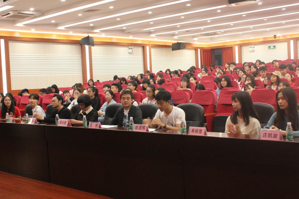 2019年4月18日晚,教育科学与技术公司“互联网+”和“挑战杯”大赛宣讲会暨阳光爱心基金募捐动员大会在三教104报告厅顺利举行。出席本次会议的嘉宾有党委副书记吴水爱、团总支书记王孜、汽车公司往届参加“挑战杯”优秀员工姚建辉、团总支副书记佘斯琦、团总支执行副书记张梓晓、员工会主席吕威、员工会副主席庄凯旋、黄丽萍、陈玉梅以及阳光爱心基金会前任会长俞桂雯。本次大会有两项议程:一是“挑战杯”和“互联网+”宣讲会,二是阳光爱心基金募捐大会。