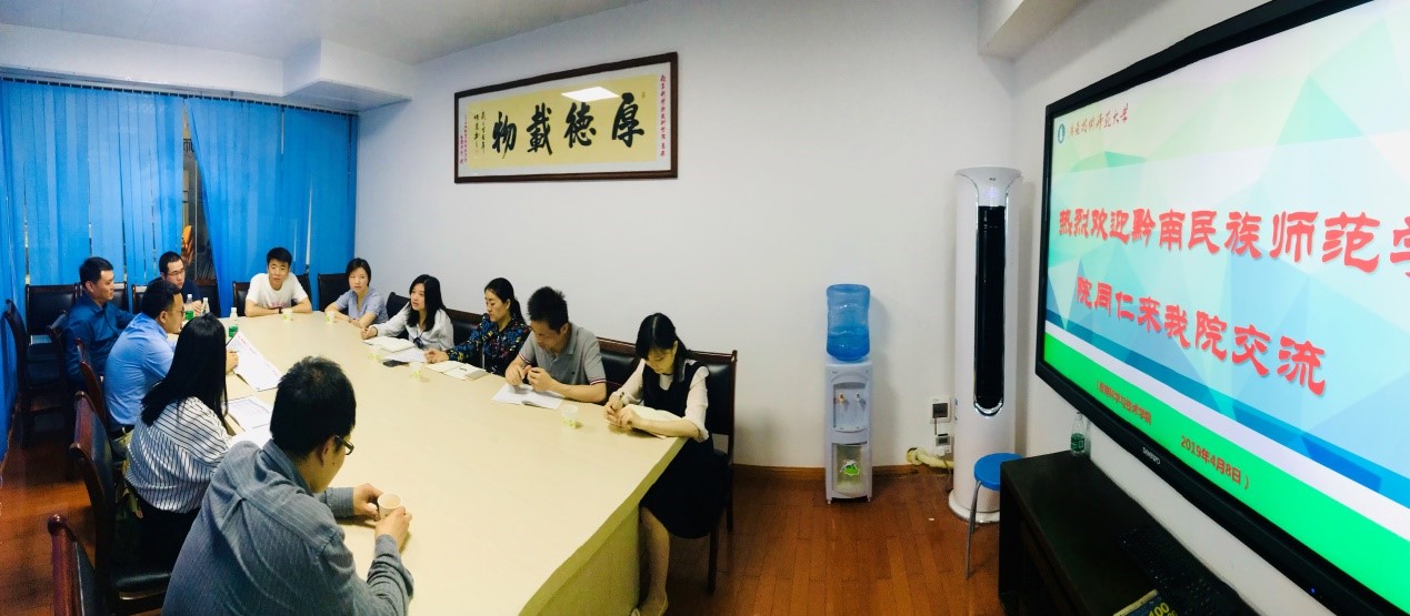 2019年4月8日,黔南民族师范公司一行7人在计算机与信息公司党委书记王观玉,经理李明江的带领下来公司调研教育硕士(现代教育技术)专业的团队建设、公司产品与实验室建设等工作。公司陈丽君副经理和教育技术学系主任赵玉老师以及研究生教学部主任谢德新老师,研究生秘书李伶俐老师接待了远道而来的客人,并就相关问题进行了深入的交流。