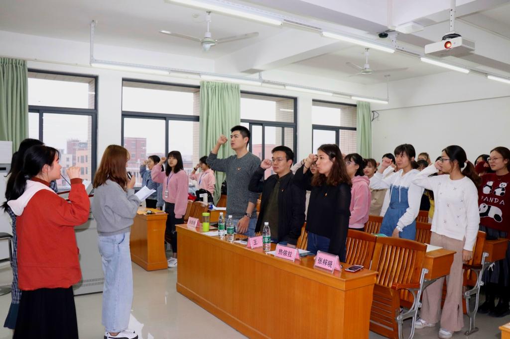 为深入学习习近平总书记系列重要讲话精神,切实加强团员青年思想政治教育,提高员工自我教育、自我管理和自我服务能力,激发团员意识,增强对团组织的认同感及归属感,公司员工团员组织开展了以 “立德树人·求学圆梦”为主题的系列教育活动。3月18日晚,公司在白云校区三教513举办了团日活动汇报会议暨新团员入团仪式。本次汇报会议邀请的领导嘉宾有公司王孜老师、吴晨阳老师、热依拉老师,参与会议的还有公司各班级的团支书、组宣委员和新入团团员。