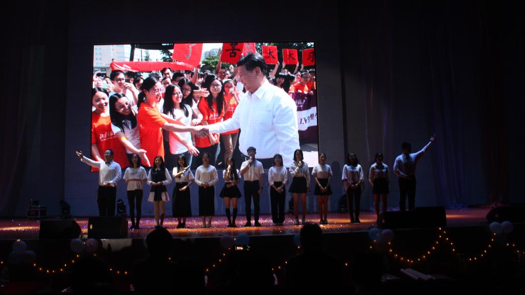 随着激动人心的抽奖环节而来的是配合默契的乐队演唱的《爱就对了》,这首摇滚情歌把全场气氛推向了高潮;紧接着是引得笑声四起但结尾却又能引起观众对生活的思考的默剧《诊室风波》及各具特色的韩舞《Dance the night away》、民族舞《喀什的姑娘》与爵士舞《L&F》的呈现,可谓精彩纷呈。舞台上的完美呈现,是每一位表演者幕后辛苦训练的体现,这是中国梦实现的缩影。一代代青年人的刻苦训练,不懈奋斗,这是中国梦实现的必经之路。