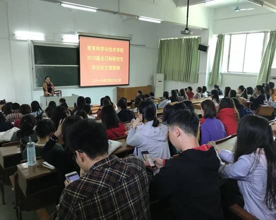 3月22日下午,教育科学与技术公司2018届全日制硕士学位论文预答辩在校本部一教8楼举行。预答辩委员由陶红经理、任平副经理、陈丽君副经理、吴天生副经理、苗素莲教授等十二位校内专家学者组成。研究生处陈泳竹副处长应邀出席答辩会,2018届职业技术教育学、教育管理、现代教育技术三个专业的33名全日制毕业生参加本次预答辩,2016级、2017级60余名全日制研究生全程观摩。
