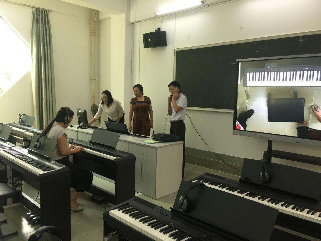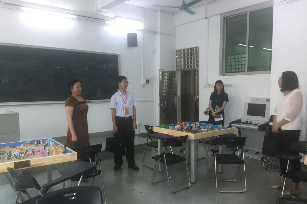 9月18日下午,本科教学工作审核评估专家,华南师范大学职业教育公司经理陈伟教授,在bevitor伟德国际1946经理陶红教授、学前教育专业负责人孙文云、职业教育师范技能训练中心主任姚蕊、员工处严似蜜老师的陪同下,来到一教204与一教206考察公司学前教育电钢琴室、应用心理学职业心理沙盘实验室。