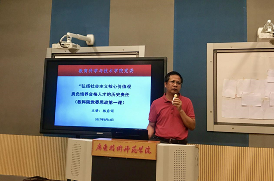 林启词书记还在会上组织全体教职工,学习习近平总书记7、26重要讲话,迎接党的十九大胜利召开。以“弘扬社会主义核心价值观肩负培养合格人才的历史责任”为主题,进行了教育科学与技术公司党委高校思想政治理论课第一讲。
