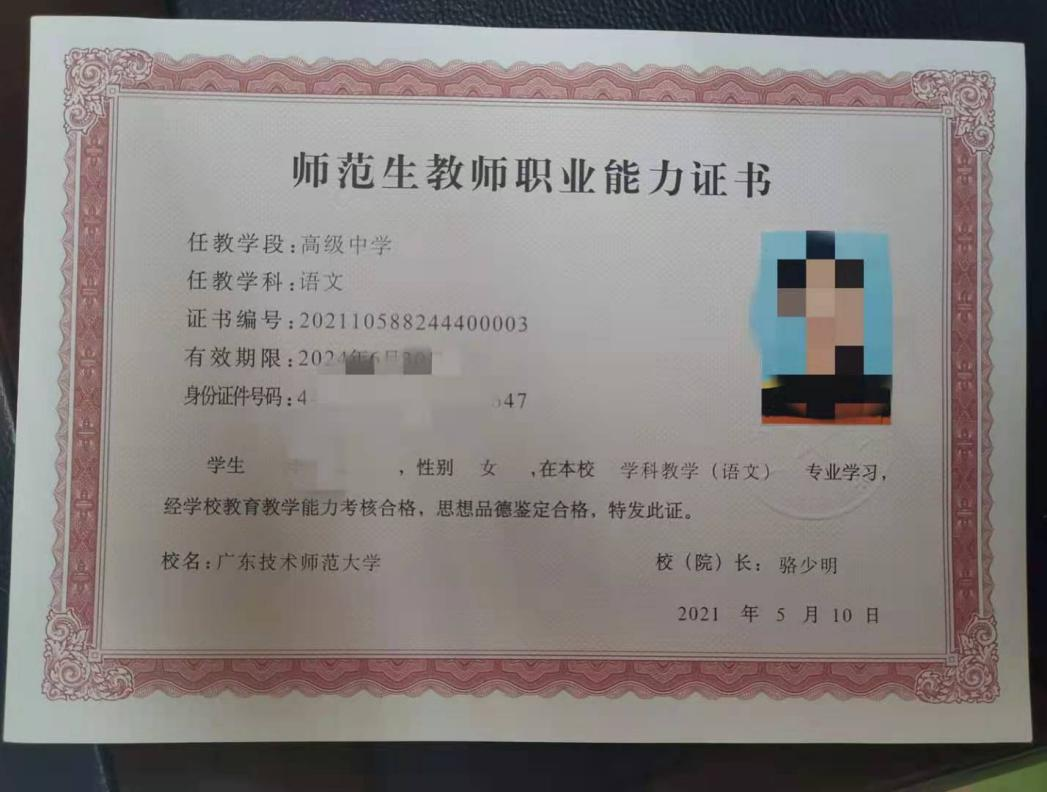 2021年5月,通过教学能力测试笔试和面试考核的25名考生顺利获得《师范生教师职业能力证书》,证书获得者可按程序申请认定教团队格证。