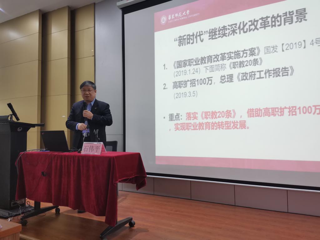2019年12月3日上午,“伟德国际1946bv教育名家讲坛”第三期在公司东校区第一教学楼209讲学厅成功举办。本次讲坛邀请的主讲嘉宾是华东师范大学终身教授、博士生导师、华东师范大学职业教育与成人教育研究所名誉所长石伟平教授。