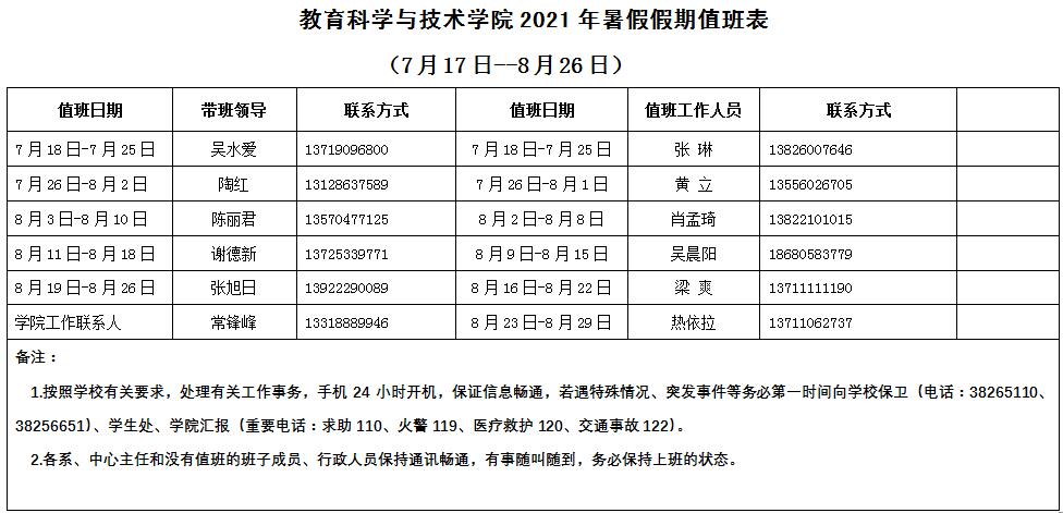 (二)、教师放假时间为7月17日至8月26日,8月27日(星期五)正式上班, bevitor伟德国际1946班子成员8月27日上午8:30开会,全体教工10:00在东校区实验楼107集中开会。8月30日(星期一)开始上课。