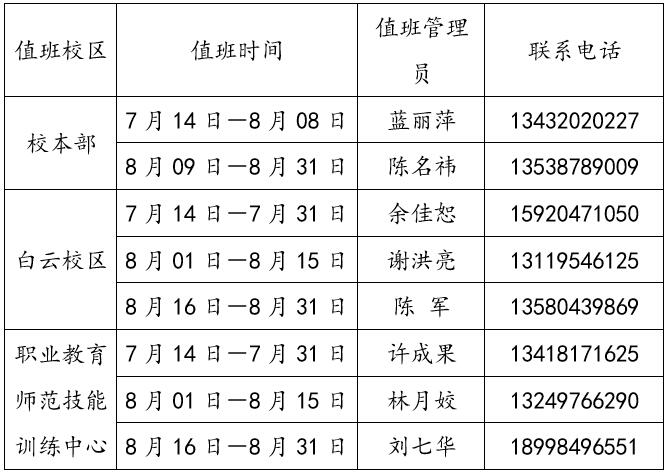 (一)员工放假时间为7月14日(星期日)至8月30日,8月31日(星期六)回校报到注册,9月2日(星期一)开始上课。