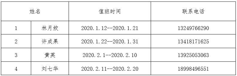 2020年教育技术中心寒假值班表