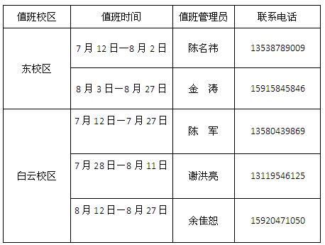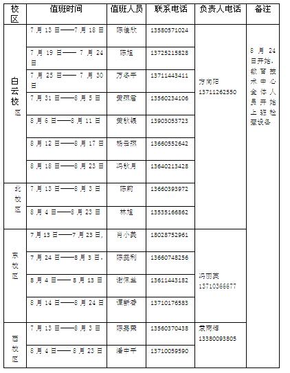 暑假期间实验中心值班安排情况如下: