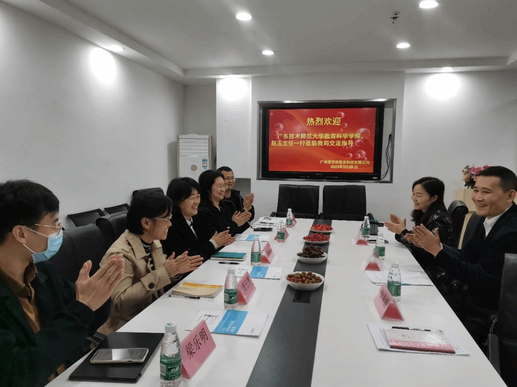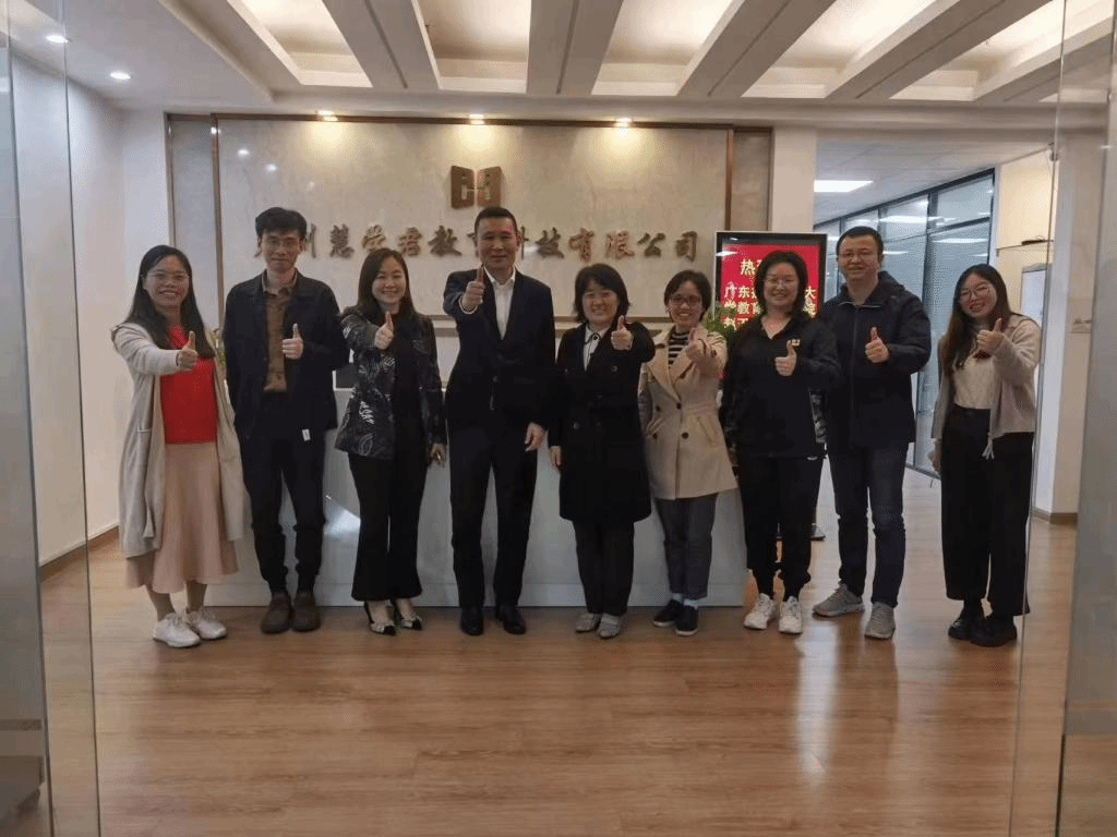 2023年3月29日下午,为推进专业建设更加符合智能时代社会产业结构调整及未来发展趋势,做好2023版本科专业人才培养方案及课程教学大纲全面修订的工作,调查教育科技企业用人要求及教育技术学专业毕业生培养的目标达标情况,推动专业建设和人才培养模式改革,进一步加强校企合作,bevitor伟德国际1946教育技术学系一行赴广州市慧学君教育科技有限公司进行调研交流。bevitor伟德国际1946教育技术学专业骨干教师赵玉教授、周元春副教授、梁乐明、黄芳明、曹宇星老师参与本次调研活动。广州市慧学君教育科技有限公司林志总经理、张荣丽常务副总、李嘉净教研中心主任等公司骨干与公司一行参与座谈交流。