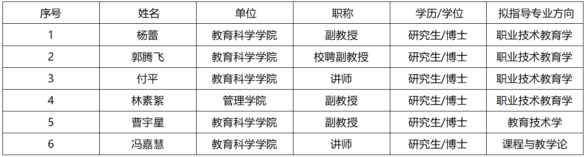 根据公司研究生院发布《伟德国际1946bv研究生导师遴选办法》(广师大〔2023〕71号)、《伟德国际1946bv专业学位研究生校外实践导师遴选与管理办法(试行)》(广师大〔2020〕215号)等文件精神的相关规定,经个人申请、公司审核和公司学位评定分委员会审议表决,现将公司2023年学术学位硕士研究生拟新增导师名单公示如下(共6人,排名不分先后)