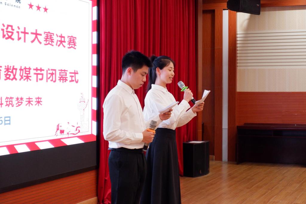 接着,由主持人宣读本次比赛的获奖名单,它们分别是:课程教学资源类一等奖《奇妙古诗游》、二等奖《科普小课堂——广东本土动物黄麂》《青春践行二十大,踔厉奋进新征程》,三等奖《The Best of China》、《擎动国富》、《赓续长征精神,走好新时代的复兴路》;教育资源开发类一等奖《网联瑰宝——汉语言非遗文化小程序》,二等奖《二十四节气双语科普平台》,三等奖《AI科技智联生活》《时创考证通》;视觉传达设计类一等奖《延续东方之美,谱写青春之歌》,二等奖《人生时钟》,三等奖《茉莉艾草茶》、《美丽校园,梦想起航》;动画类的优秀动画奖《人工智能助力实现“双碳”目标》。