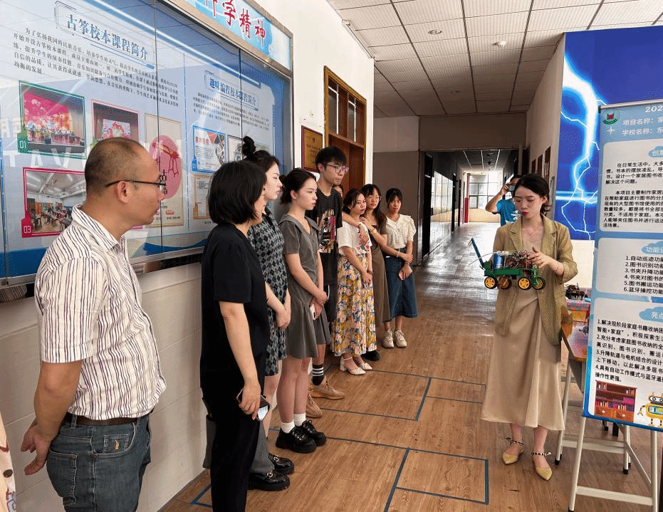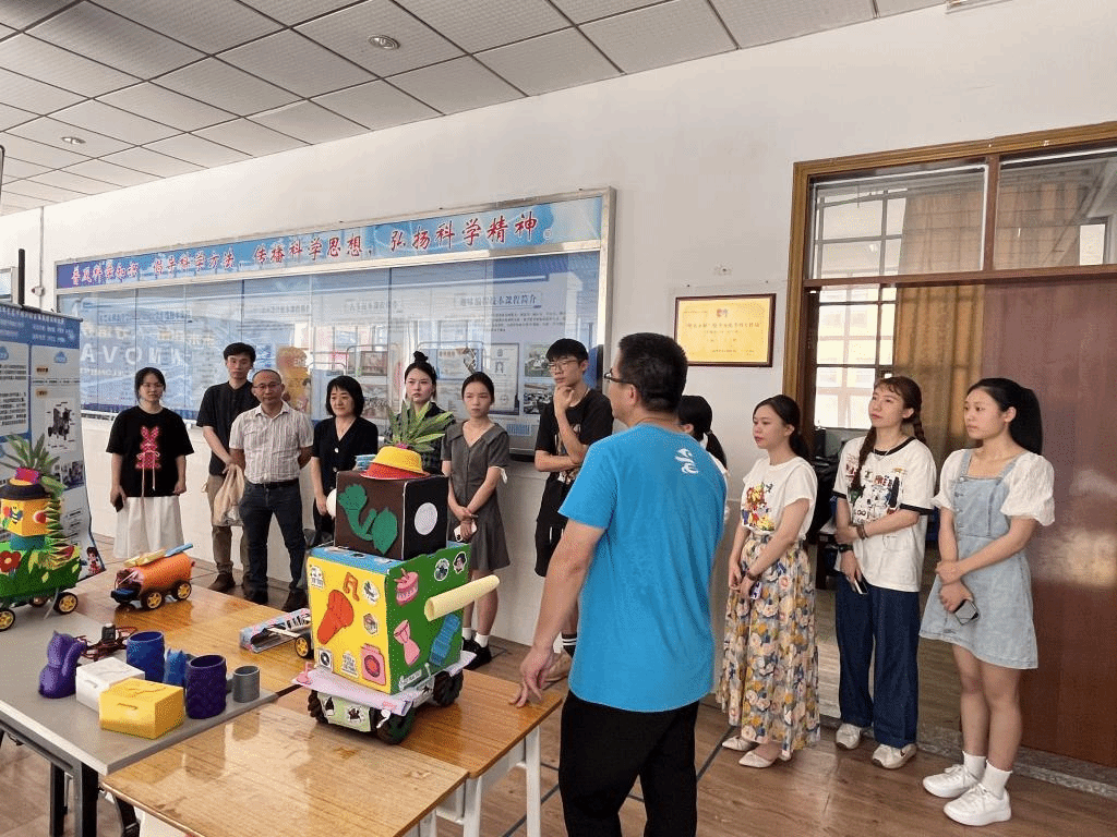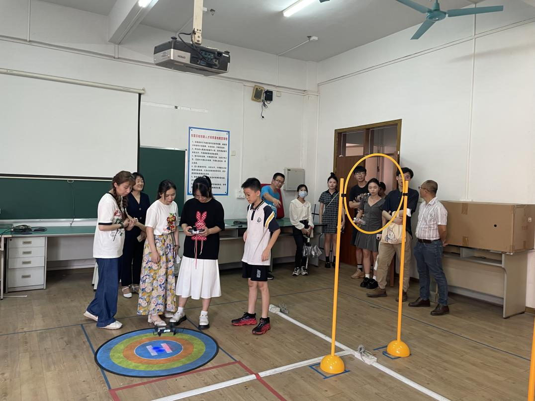 现代教育技术校外研究生导师,广东省科技教育名师工作室主持人肖春琳老师带领到访的师生参观了东莞横沥中学的科学楼,详细介绍科学楼所配备的资源及设施,如大疆机甲大师、3D打印创客室、激光切割和无人机的学习场地,鼓励研究生紧跟人工智能的发展脚步,提升自身的技能水平,多尝试学习各种新事物。肖春琳老师表示,2022级研究生通过了解实习公司的资源与设备,要做好充分的准备,根据自身感兴趣的方向多查阅文献资料,与校内外导师讨论尽快确定研究的选题方向。