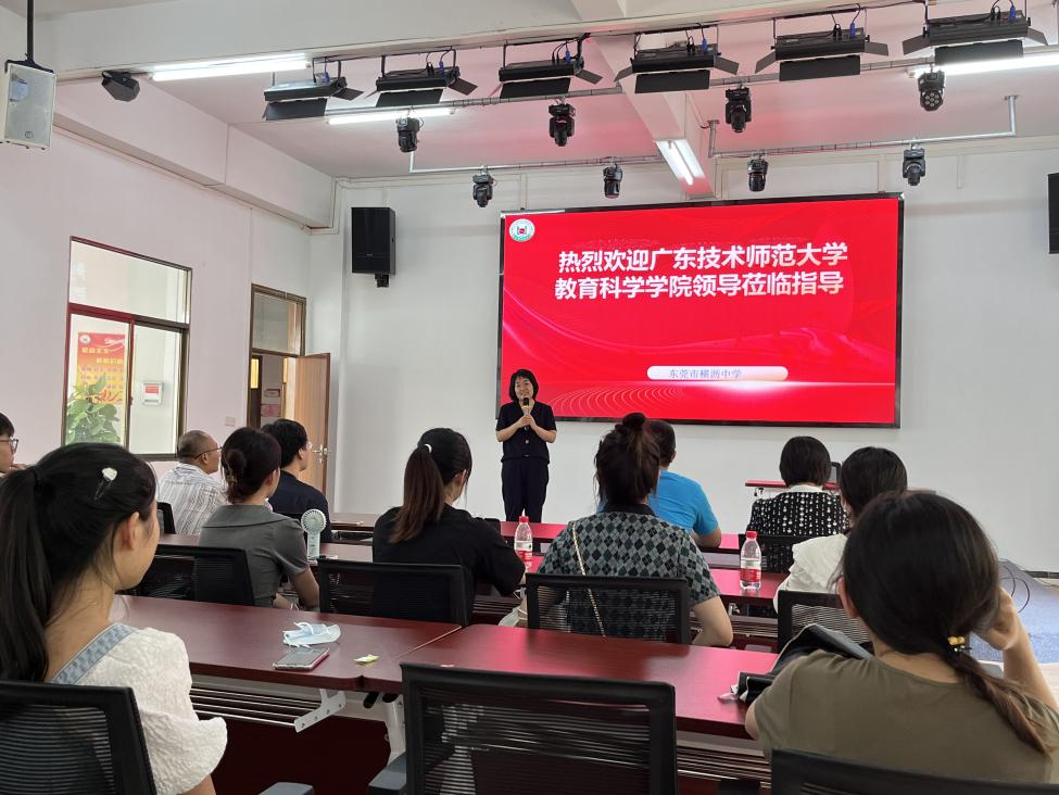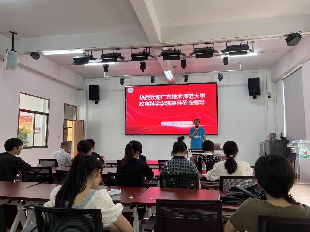 为了有效保证bevitor伟德国际1946现代教育技术专业学位研究生的培养质量,全面落实该专业研究生的人才培养计划。6月2日,公司教育技术系主任赵玉教授、现代教育技术教育硕士方向负责人梁乐明博士、数字媒体实训中心主任陈军以及2022级现代教育技术专业研究生一行到东莞市横沥中学研究生实习点,走访检查2021级现代教育技术专业7位研究生的实习情况。东莞市横沥中学林祖浮董事长、教务处陈建平主任、教研处蔡衍曼主任和校外导师肖春琳老师接待公司到访人员并表示热烈的欢迎。