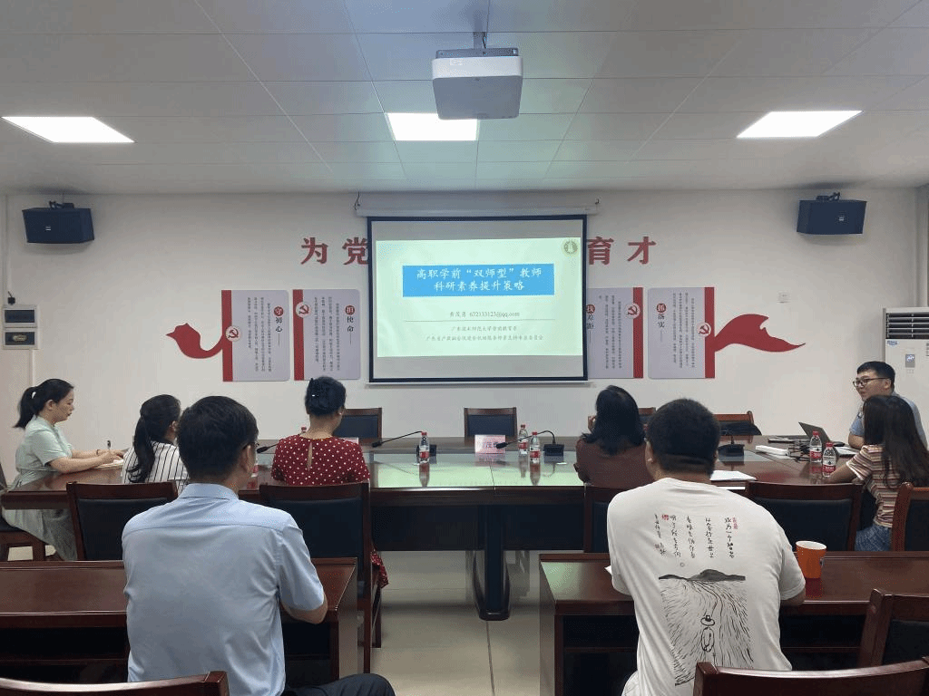6月19日下午,黄茂勇赴河源职业技术公司开展“送教上门”专题讲座,河源职业技术公司经理杜伟祥、河源职业技术公司副经理李雄以及学前教育、早期教育相关教师参与了本次活动。讲座围绕“高职院校的科研定位”、“高职‘双师型’教师队伍的科研定位”、“高职学前‘双师型’教师科研能力发展”和“智能时代高职教师发展路径转型”四个层面进行专题座谈。通过本次“送教上门”专题培训活动,参与的教师纷纷表示感触颇多,受益匪浅,也表示要积极把学到的理论运用于接下来的科研工作中,不断提升自身的科研能力及素养。