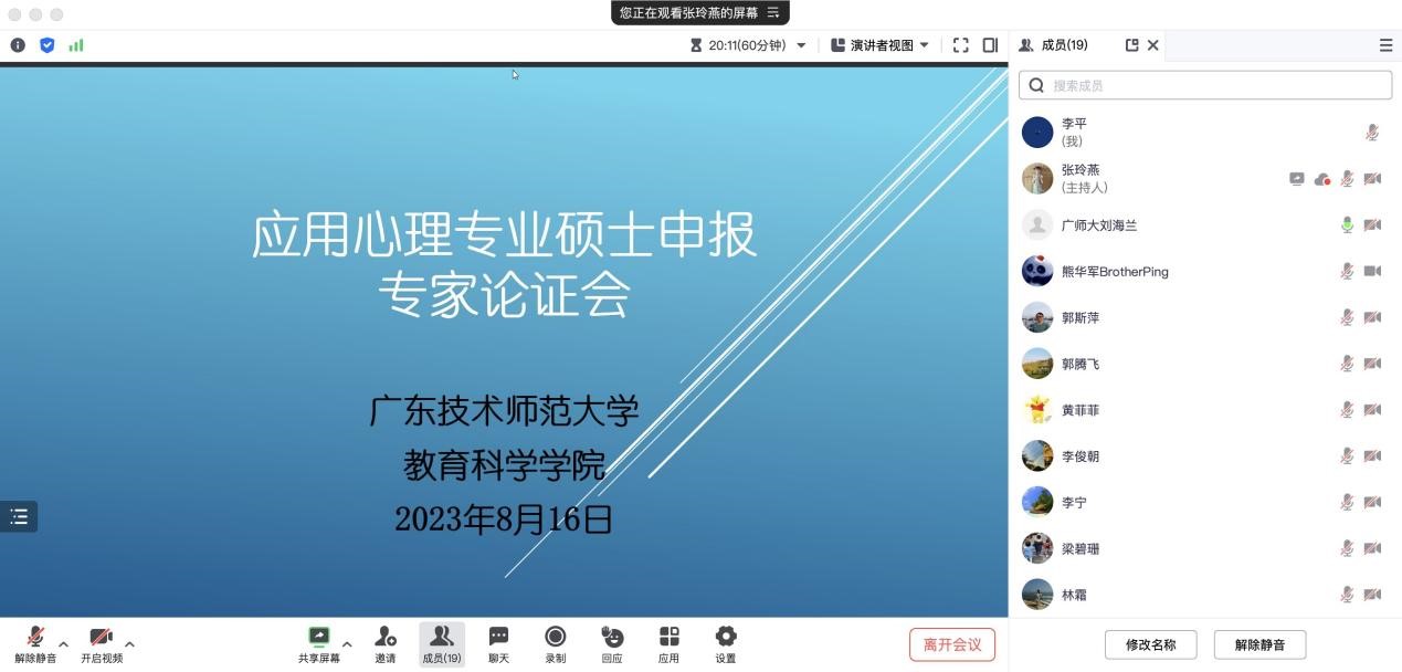 2023年8月16日晚上,应用心理学系举行应用心理硕士学位点申报第二轮专家论证会。应邀出席本次会议的校外专家有:广州大学教育公司党委书记麻彦坤教授,广州大学教育公司心理系郭斯萍教授,西华师范大学教育公司副经理冉光明教授,以及河南师范大学教育学部朱珂副教授。出席本次论证会的校内专家与领导有:bevitor伟德国际1946经理熊华军教授,bevitor伟德国际1946副经理刘海兰教授、冯帮教授、谢德新副教授,应用心理学系主任张玲燕副教授。此外,应用心理学系全体教师参会。论证会由bevitor伟德国际1946副经理刘海兰教授主持。刘海兰教授首先对参与此次论证会的四位专家进行了简要介绍。随后,熊华军经理致欢迎词,对四位专家表示热烈地欢迎与诚挚感谢,并简要介绍了bevitor伟德国际1946及心理学系的基本情况。