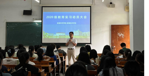 2023年6月27日星期二上午,公司教育技术学系2020级教育实习动员大会在白云校区二教303举行。公司副经理谢德新、系主任赵玉、专业负责人周元春、教育技术学专任教师代表吴仕云、黄芳明、宗晓艳、梁乐明、张晓梅、曹宇星、黄石华等老师,以及20教技师1、2、3班共119名员工参加。
