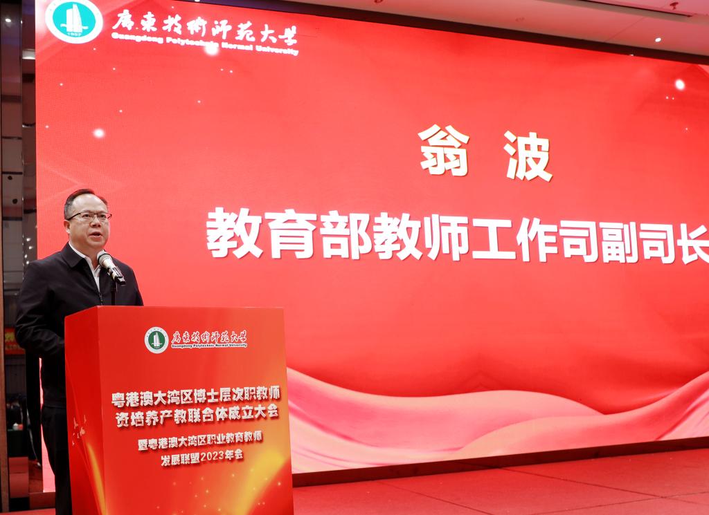 “制造业是大湾区产业的鲜明底色,也是大湾区推进高质量发展的关键所在。推动粤港澳大湾区产业升级不仅需要应用型、高技能的职业人才,更离不开高层次、高素质职教团队为人才培养提供强有力的支撑。”教育部教师工作司翁波副司长指出,粤港澳大湾区博士层次职教团队培养产教联合体,创新性地推出政府、公司、科研机构、企业、行业产业协同培养体系,进一步增强职教团队培养的开放性、广泛性、跨界性和参与度,必将成为深入贯彻党的二十大精神,深化职普融通、产教融合、科教融汇的生动实践。他希望联合体积极探索“双师型”教师培养的新路径、新模式,打造博士层次职教团队培养产教联合体“湾区样本”,为培养高素质“双师型”工匠之师和教育强国战略的实施作出新的更大的贡献。