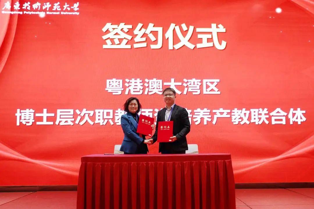 会议举行了战略合作签约和揭牌仪式。在全体与会嘉宾的共同见证下,粤港澳大湾区博士层次职教团队培养产教联合体成员单位正式签约,并正式揭牌成立粤港澳大湾区博士层次职教团队培养产教联合体。
