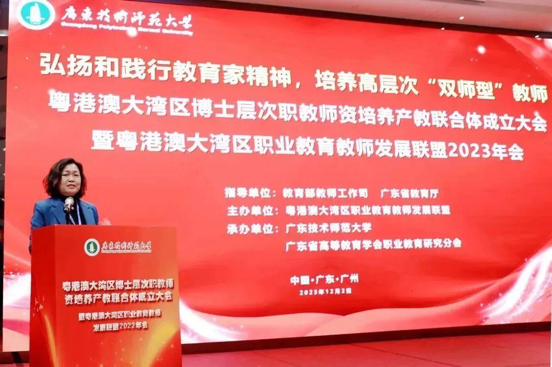 高素质“双师型”职教团队是职业教育高质量发展的关键支撑。12月2日,粤港澳大湾区博士层次职教团队培养产教联合体成立大会暨粤港澳大湾区职业教育教师发展联盟2023年会在广州举行。本次大会以“弘扬和践行教育家精神,培养高层次‘双师型’教师”为主题,来自全国各地的专家学者、企业高管、高校师生代表200余人参加了大会。