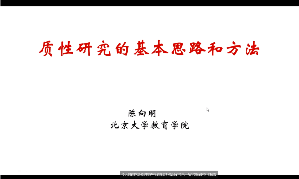 陈向明教授的讲座围绕“什么是质性研究、如何提出有价值的质性研究问题、如何收集高质量的研究材料并系统的进行分析”这几个主题开展。陈老师讲述了质性研究的意义,质性研究是以研究者本人作为研究工具,在自然情境下采用多种资料收集方法(访谈、观察、实物分析)对研究现象进行深入的整体性探究,从原始资料中形成结论和理论,通过与研究对象互动,对其行为和意义建构获得解释性理解的一种活动。