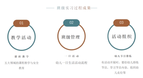 本次实习总结大会中,7位实习生分享了实习收获和感悟,表示亲历教学全过程,才知理论学习与教学实践截然不同。实习生跟着指导老师进一步学习了环境创设、游戏组织、节目编排等专业知识和技能,一致认为在实习过程中提高了课堂教学能力。各位实习指导教师对于7名实习生的实习表现也做了积极的评价和指导反馈。
