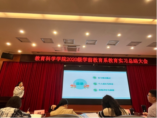 2024年1月2日,bevitor伟德国际1946学前教育系于白云校区三教104报告厅举行了2020级学前教育本科师范生教育实习总结大会,出席会议的有学前教育系教师黄茂勇、覃江梅、陈丽、毕进杰、苟晓玲、李灵丽、蔡娜、骆明丹、2020级全体实习生以及2021级部分员工代表。
