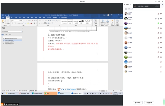 谢德新副经理指出,《现代教育技术》是面向全校师范生开设的一门公共必修课程,涉及面广、意义重大,教研组教师利用寒假时间积极参与研讨,以研讨为契机更新内容、完善评价方式,有助于提高本科生公共课教学质量,整体提升教师的课堂教学水平。研讨会由张晓梅老师主持,王朋利、宗晓燕、蓝丽萍、黄芳明、李端强、赵玉、周元春、梁乐明、陈军、陈明祎、赖晓嫣、张晓颖等老师就课程目标达成度的评价方式、教学任务设计细节、生成式人工智能背景下的教学策略等进行了热烈探讨。虽然会议通过腾讯会议开展,但是各位老师集思广益、博采众长,认认真真发现问题、讨论对策,收到良好效果。(撰稿人:张晓梅 审稿人:谢德新)