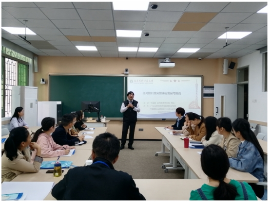 学术活动期间,1月18日,“两岸职教菁英‘湾区行’暨文化交流研讨会”在公司东校区第一教学楼106举行,来自省内外50余名专家学者参加研讨会。研讨会首先由台湾教育研究院课程及教学研究中心研究教师牛涵钊博士主讲,他以《台湾技职教育的课程发展与挑战》为题,从历史回顾、课程环境、课程设计、省思与建议等四个方面,全景式扫描了台湾技职教育的发展过程,呈现了台湾技职教育的生动图景。牛涵钊博士从哲学的高度,引用美国杜威“教育即生活”和英国斯宾塞“教育为未来生活之准备”之教育思想,他认为“生活离不开技职,生活就是技职”,引发了在场专家学者对于教育、工作与生活的深度思考。