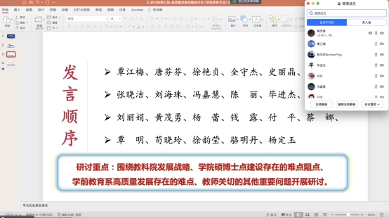 此次学前教育系高质量发展战略研讨会将公司高质量发展研讨会会议精神进一步落地,全系教师齐心协力谋划学前教育系和公司高质量发展思路,助力博士点建设,推动教育学学科发展。