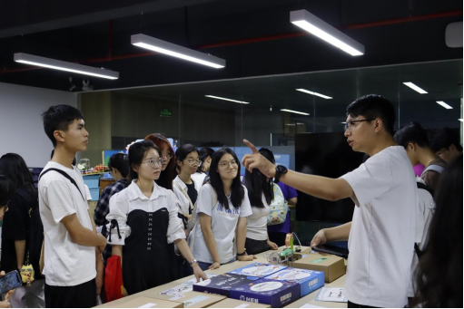 会后,企业相关负责人针对同学们提出的问题进行详细解答,并带领师生前往公司展厅现场参观体验数字化教育科创产品,了解创客教育的落地性应用,开拓了同学们的视野。