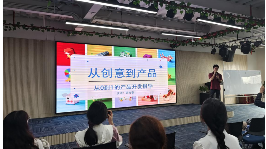 产品研发经理钟海泰作“从创意到产品”的产品开发主题分享,从创意、设计到测试与改进,为同学们讲解了产品开发的全过程,并提供了理论落实到技术的指导经验。