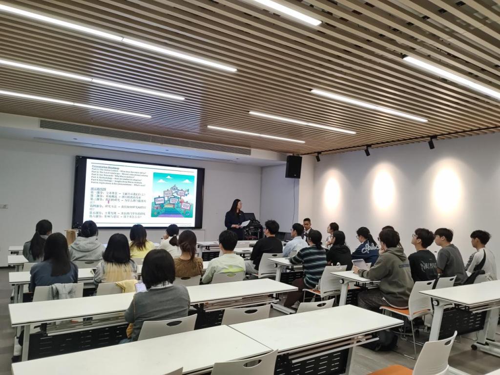 讲座开始前,谢德新介绍了此次澳门圣若瑟大学到访的活动背景、主要议题和未来前景,以及讲座嘉宾郑蕴雯教授的基本情况和研究领域。随后,郑蕴雯从人工智能驱动的数字学习变革的全球背景、澳门教育改革、为什么关注澳门、如何研究AI的运用、主要发现以及教育影响与建议六个方面进行讲座,为公司师生较为全面地呈现人工智能时代澳门高等教育中AI运用的经验。接着,李志恒向公司师生介绍了澳门圣若瑟大学的办学历史和招生情况,重点介绍了教育学硕士和博士课程开设的相关情况。最后,同学们就讲座内容的相关问题和该校的研究生申请问题进行了交流和讨论。