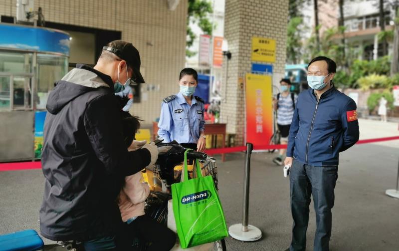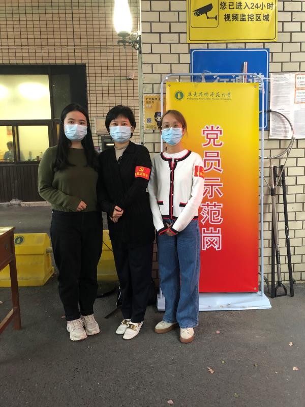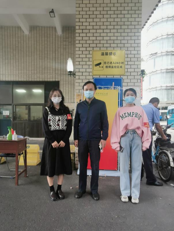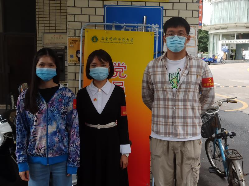 在公司经理邓文新的带领下,部分师生党员在校门口查验进出校园人员的粤康码,测体温并核实身份,以耐心、细心、贴心的服务,让党旗在抗疫一线高高飘扬。以实际行动践行初心使命、体现责任担当。