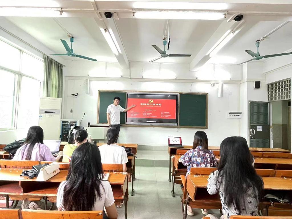 随后,郭腾飞老师带领大家共同学习了《习近平在广东考察时强调:坚定不移全面深化改革扩大高水平对外开放 在推进中国式现代化建设中走在前列》一文。他强调,要进一步把学习贯彻习近平总书记视察广东的重要讲话、指示精神与学习贯彻习近平新时代中国特色社会主义思想结合起来,与学习贯彻党的二十大精神结合起来,进一步解放思想、奋发进取,不辜负习近平总书记的殷殷嘱托和具体指导。陈育勤、蔡松、李海婷等三名党员分别结合自身的实际情况,分享学习心得。同学们纷纷表示,将会不断提高政治站位,认真研学,学深悟透习近平总书记视察广东重要讲话重要指示精神,并做到学以致用。