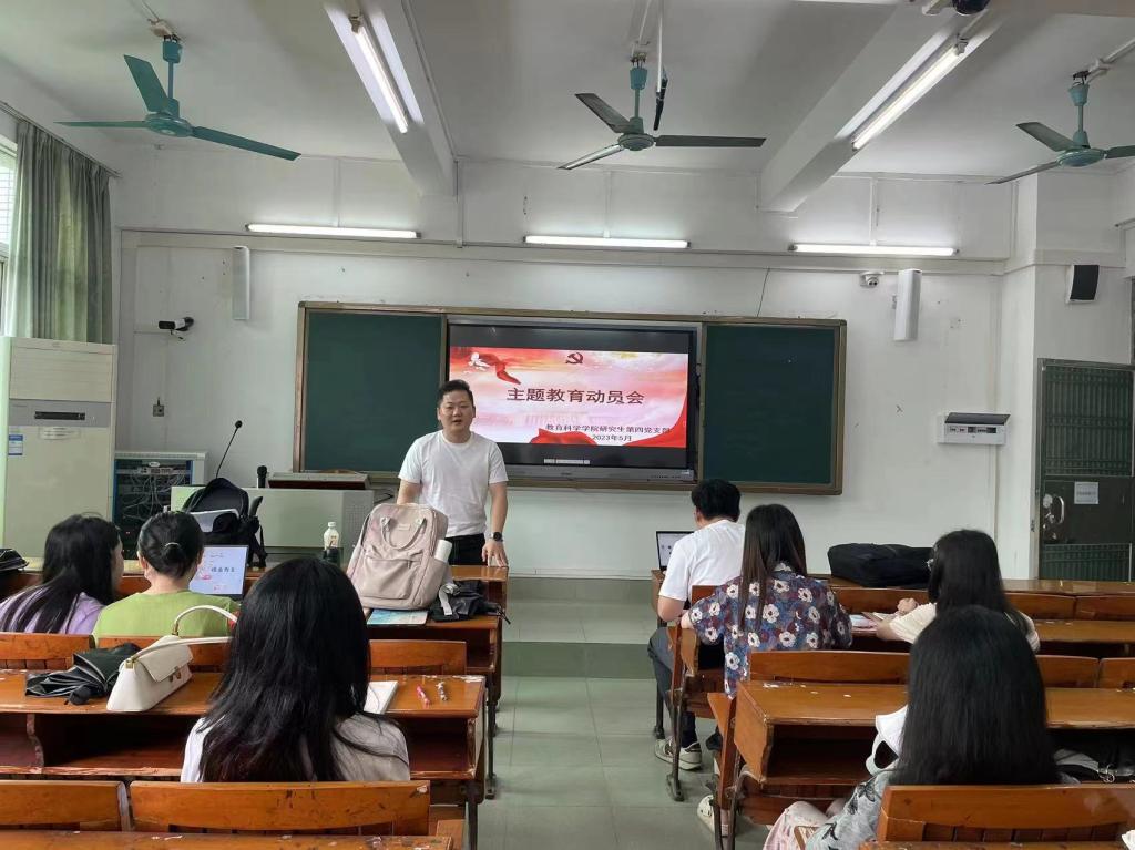 5月23日上午,研究生第四党支部在东校区第一教学楼402室召开学习贯彻习近平新时代中国特色社会主义思想主题教育动员会暨专题党课,并及时对支部主题教育进行安排部署。党支部书记郭腾飞老师,支部全体员工党员、发展对象及入党积极分子参加了本次会议。本次会议采取线下会议、视频会议相结合的形式召开。