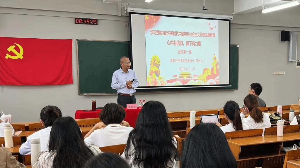 张旭日以《心中有信仰,脚下有力量——理想信念、国家和你》为题,以“理想信念就是共产党人精神上的钙,没有理想信念、理想信念不坚定,精神上就会缺钙,就会得软骨病”为切入点,于10月11日和10月19日分别在白云校区和河源校区为2023级全体本科生、研究生同学讲授思政第一课。首先,张书记强调了确立理想信念的重要性,通过讲述理想信念的正面作用以及缺失理想的现实案例得出结论:理想信念的缺失是非常可怕的。并且以国家理想、广东理想、公司理想、公司理想来循序渐进地引导同学们思考个人理想的含义。其次,张书记告诉同学们“幸福都是奋斗出来的”,鼓励同学们每天多做一点点,通过日积月累会有很大的收获,向着实现理想信念而不懈奋斗。接着,张书记殷切地希望各位同学在学习和生活中能够注重德智体美劳全面发展,争做堪当民族复兴重任的时代新人。特别是在德育方面能够规范自身行为,力争做到以下几点:一是讲文明。讲校园文明,以高等公司员工行为准则来严格要求自己;讲宿舍文明,注意宿舍卫生和用电安全,营造健康、安全、和谐的宿舍环境;讲网络文明,注重防范网络诈骗以及规范网络用语,谨记网络并非法外之地,培养自己文明上网的习惯。二是负责任,担使命,主动承担起家庭责任、社会责任和个人责任,做到不抛弃和不放弃,培养自身的大局意识。三是讲诚信,明白“人无信则不立”,在学习和生活中拒绝考试作弊、论文抄袭、就业背信违约、求职履历掺水等行为。四是懂感恩,感恩伟大的祖国,感恩给予生命的父母和传授知识的老师。在智育方面能够学好自己的专业知识,扎实自己的专业技能,提高自己的专业技巧,培养和锻炼自己的学习能力。在体育方面能够加强自身锻炼,对标“无体育,不清华”将体育锻炼作为我们心理调适的渠道和方式,从而确保身心健康。在美育方面注重加强自身审美能力,追求卓越,止于至善。在劳育方面能够主动接受劳动教育,在劳动中感受快乐,在劳动中学会成长,进一步领悟“幸福都是奋斗出来的”深刻含义。最后,张书记鼓励同学们“把激昂的青春梦融入伟大的中国梦”,呼吁同学们面对新时代浪潮,要撸起袖子加油干,强国有我,不负使命。