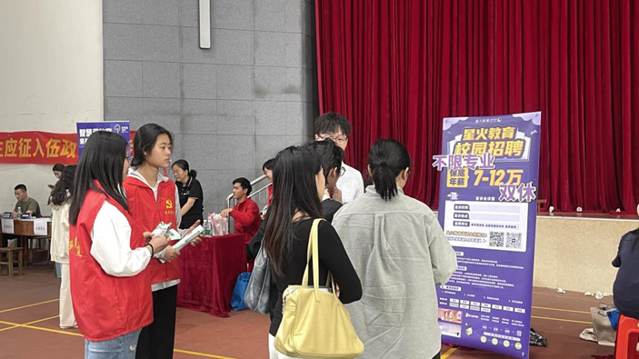 (图:支部党员为前来应聘同学指引路线和解答问题)