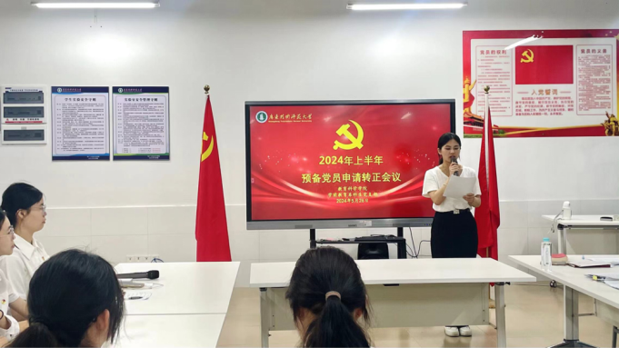 会议主要讨论了预备党员许琳纯、陈林妍、吴伟婷、余嘉欣、周幸铃、管诗菡六位同志的转正事宜。按照发展党员流程,六位同志依次汇报了自己在预备期的心得体会,从思想、学习、工作三个方面汇报自己的成长情况。六位同志从自身出发,强调党员同志们应坚守初心使命,竭尽所能为人民谋福祉;时常开展自我监督与自我学习,增强党性修养;同时,将党员的责任与担当视为首要职责,保持对党的忠诚与事业的热情,脚踏实底、坚定信念,谱写新时代的青春之歌。汇报完毕后由正式党员进行随机提问,预备党员结合自身实际情况进行现场答辩。