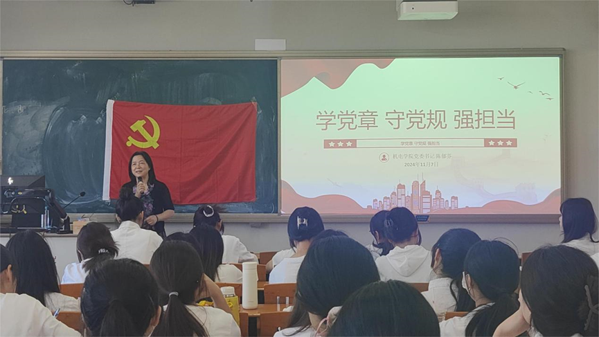 陈郁芬以《学党章、守党规、强担当》为题,对《中国共产党章程》的内容进行详细讲解。她强调学习党章是党员的基本要求,要深刻领悟“两个确立”的决定性意义,增强“四个意识”,坚定“四个自信”,做到“两个维护”。呼吁学员们在日常生活中以党员标准来严格要求自己,做到身比心先入党。陈郁芬指出严明的党纪是党的生命线,开展党纪学习教育对于全面从严治党具有重要意义,要求学员们在日常学习和生活中遵守校规校纪、班规班纪,充分发挥模范先锋作用。