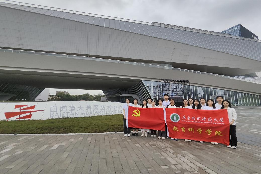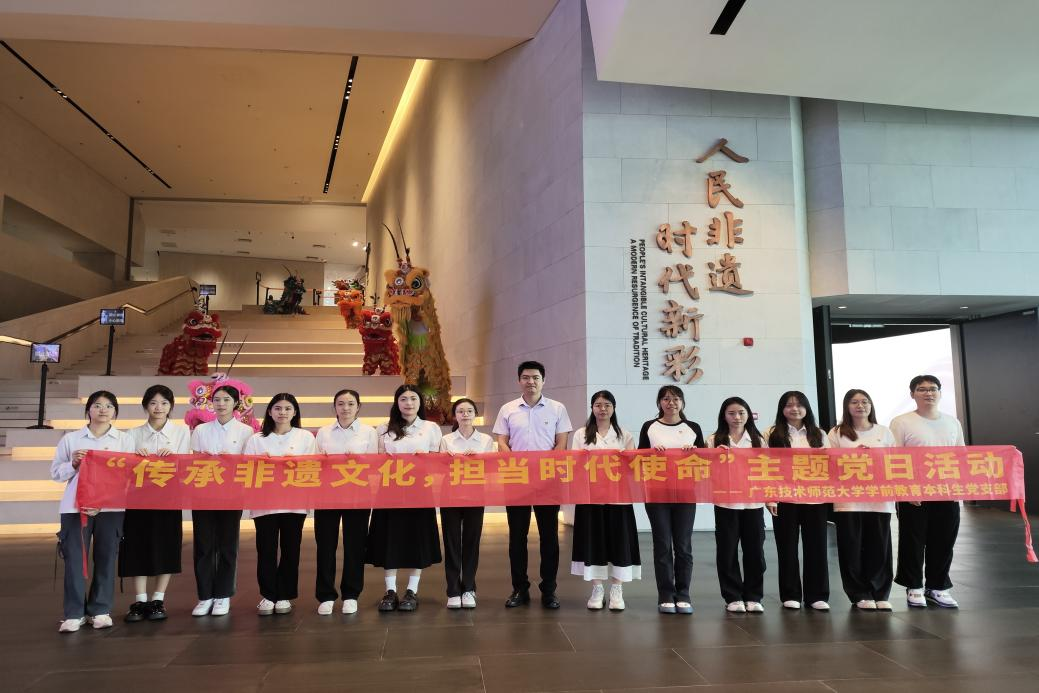为深入贯彻党的二十届三中全会精神,学习领会习近平新时代中国特色社会主义思想,坚定文化自信,学前教育本科生党支部精心策划并举办了主题为“传承非遗文化,担当时代使命”的党日活动。11月16日上午,在支部书记吴晨阳老师的带领下,全体支部委员、支部党员以及党员发展对象共同前往白鹅潭大湾区艺术中心,开展了一次富有教育意义的参观践学活动。